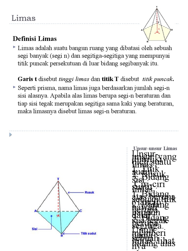 Balok adalah bangun ruang tiga dimensi yang memiliki 6 sisi dan 12 rusuk serta 8 titik sudut. Kebanyakan tempat penyimpanan berbentuk balok seperti kotak sepatu, kotak makanan, kotak kemasan seperti bangun ruang lainnya, balok memiliki volume. Panjang rusuk balok yang memilikivolume 60 cm³maka, panjang, lebardan tinggi balok tersebut adalaha.5x4x3b.5x2x4c.5x4x4d.5x2x23. Balok adalah benda yang berbentuk persegi panjang dengan kedua ujung berbentuk persegi. Berikut ini saya membuat daftar lengkap rumus bangun ruang, agar kamu dapat dengan mudah menyelesaikan berbagai soal.